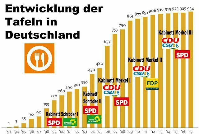 Noch krasser wird es dann, wenn dieselbe Kanzlerin, die sich und ihre Arbeit seit Jahren über den „grünen Klee“ lobt, davon spricht, dass es „uns“ so geht wie noch nie in einem Land in dem man gut und gerne lebt, nun selber auch feststellt, wie viele Menschen auf „Hilfe“ angewiesen sind?!